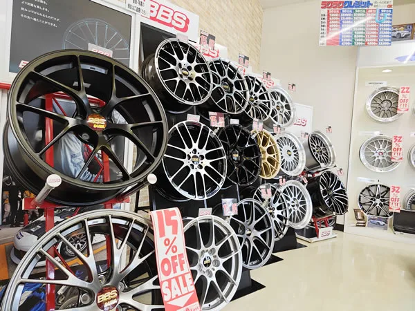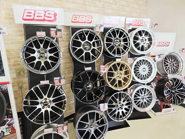 いつかはBBS」と憧れを抱く方も多いのではないでしょうか? 当店では、そんなBBSホイールの魅力を存分にお楽しみいただけるコーナーを設けております。