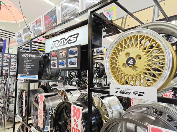 妥協なき性能とデザインで、多くのドライバーを魅了するRAYSホイール。当店では、RAYSの多彩なラインナップを豊富に取り揃えたコーナーをご用意しております。