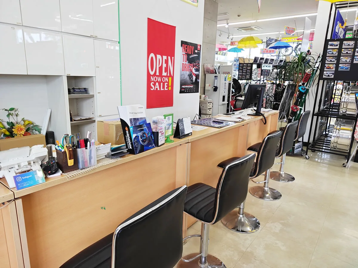 お客様の大切な愛車の足元を彩るタイヤ・ホイール選び。当店では、専門知識豊富なスタッフがお客様一人ひとりのご要望を丁寧にお伺いし、最適な一本をご提案するための商談スペースをご用意しております。