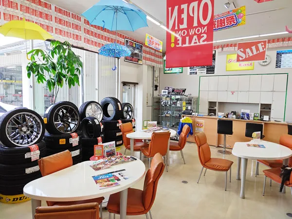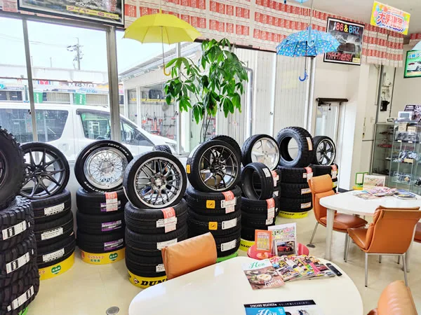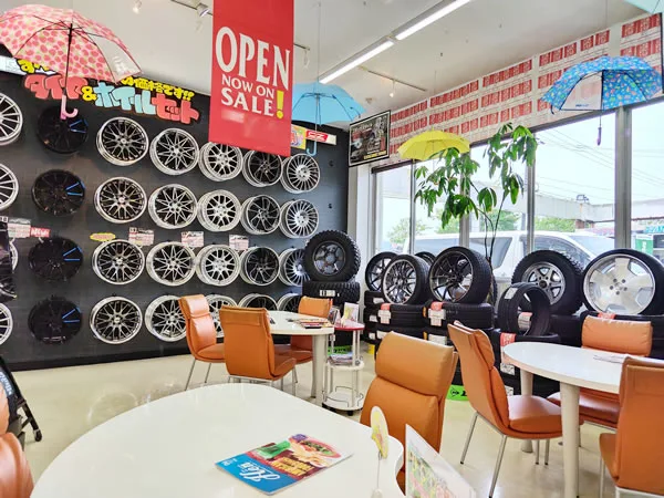ホイール交換や各種作業をお待ちの間も、ゆったりとお過ごしいただける待合スペースをご用意しております。各種雑誌を取り揃えておりますので、フリードリンクを飲みながら快適な時間をお過ごしくださいませ。